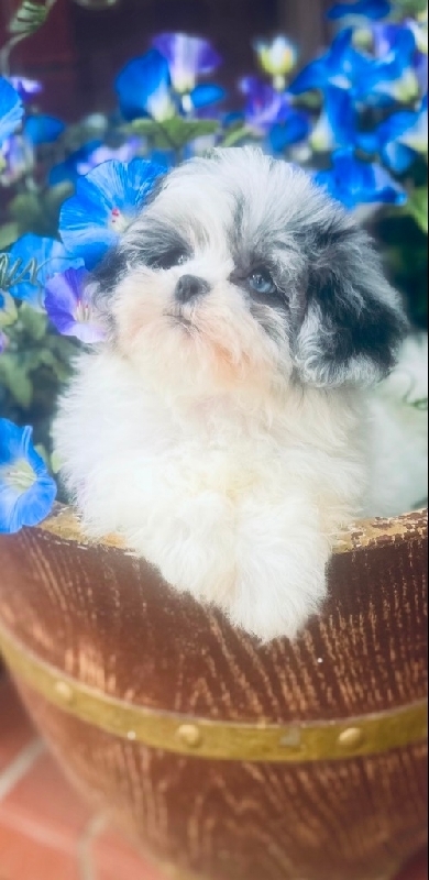 Shihpoo Female Blue Merle Shihtzu & toy poodle mix. We have one female shihpoo puppy left-ready for a new home. Mom is a blue female AKC registered shihtzu and dad is a blue merle toy poodle. Non shedding, happy, socialized and full of unconditional love! One Blue eye. If you're looking for a wonderful companion, therapy dog or just a buddy that will love you forever!! call us at 281-898-5845. $3500. Pictures taken 3/2/26. Located in Clear Lake 77062. We meet at the police station for safety. Ready now! 3500