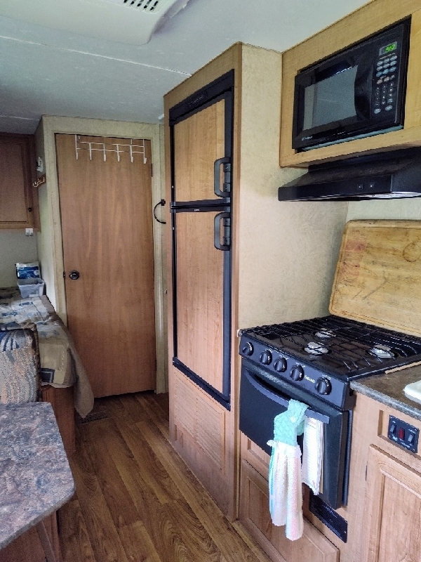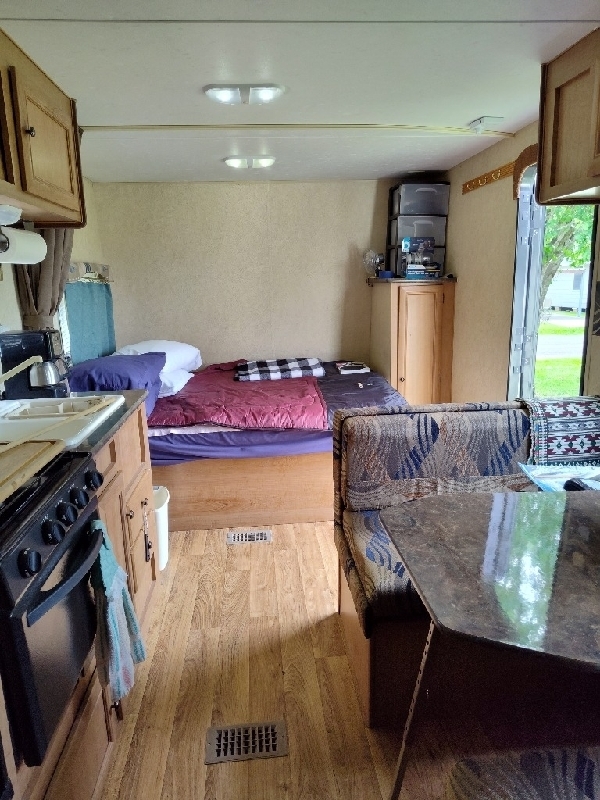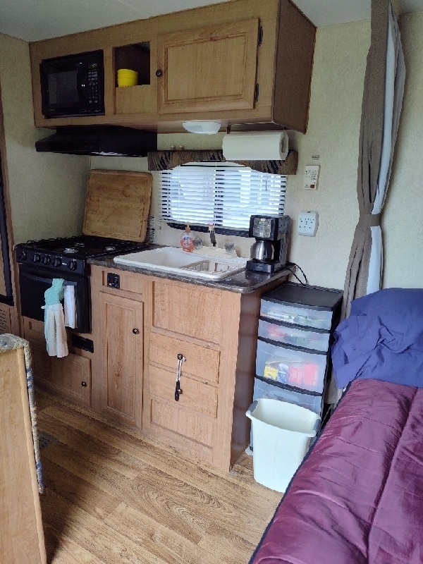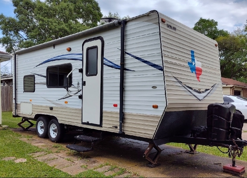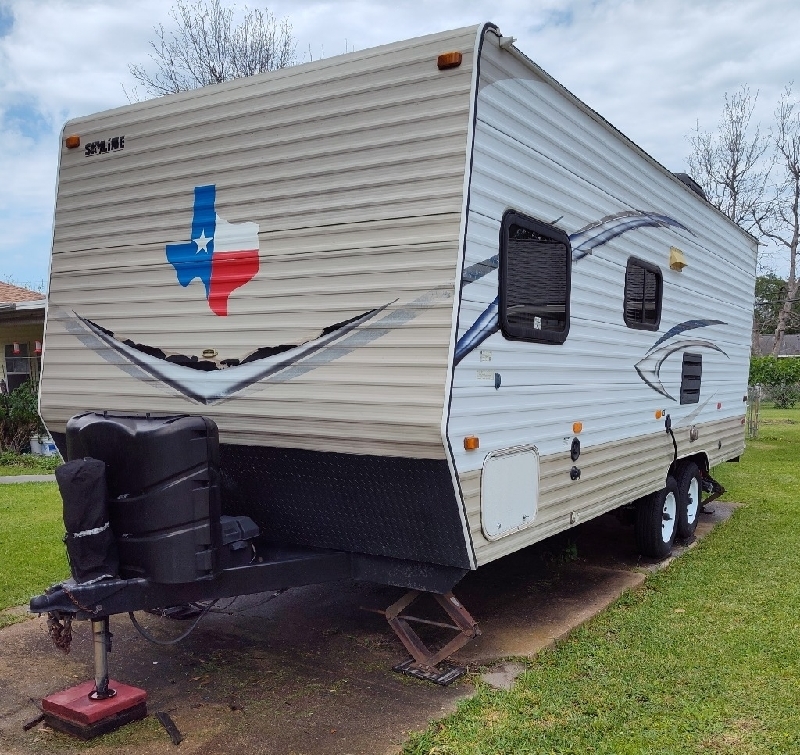 2014 Skyline Weekender For Sale by Owner: 2014 Skyline Weekender 216, hitch pull travel trailer, 8ft. wide, 20' length box, 24' w/ tongue & back bumper. Dual Axles, NO Slide, electric tongue jack, two tall propane tanks, queen bed in front, bunks in back, rear bath w/ tub/shower, flush toilet, dinette w/ fold down table, cold roof air conditioner, refrigerator with separate freezer, 3 burner stove, oven, microwave. Owned by Senior Citizens with No Smoking, no pets, no children. Everything works. $10,900....(409) 749-0007