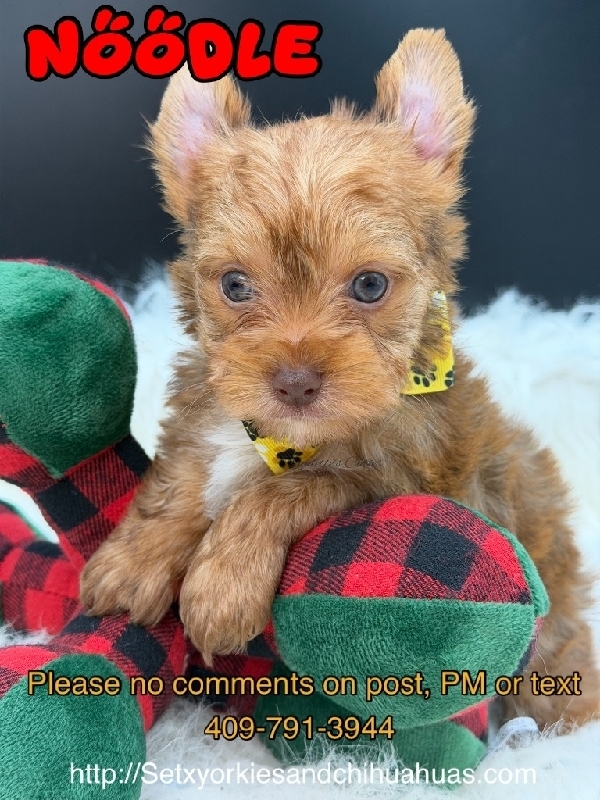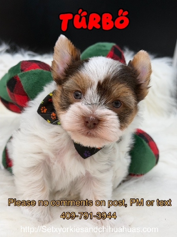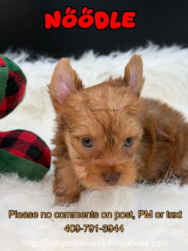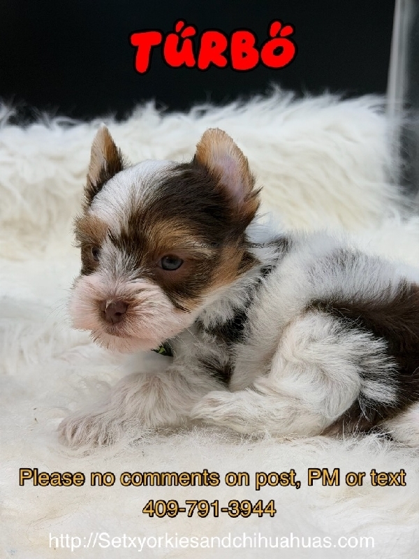 Stunning AKC Male Yorkies These tiny boys are individually uniquely colored Stunning male Yorkies. DOB 9/15 They are AKC Registered, will come with first vaccination, deworming, tail docked, dewclaws removed and wee pad trained. They are Microchipped and are such loving little boys. This could be your little prince, I am in Beau- mont Tx text or call 409-791-3944. They come vet checked and with 1st set of puppy vaccinations! Just stunning! They are the whole package! Healthy and all puppy shots and so cute & love to cuddle ! Spoiled little baby boys! New current pics are on the ad just taken today! They will be about 4 lbs. Comes with 4- generation pedigree and a very generous puppy package, food, vet records, shot record, toys and favorite blanket! 2500