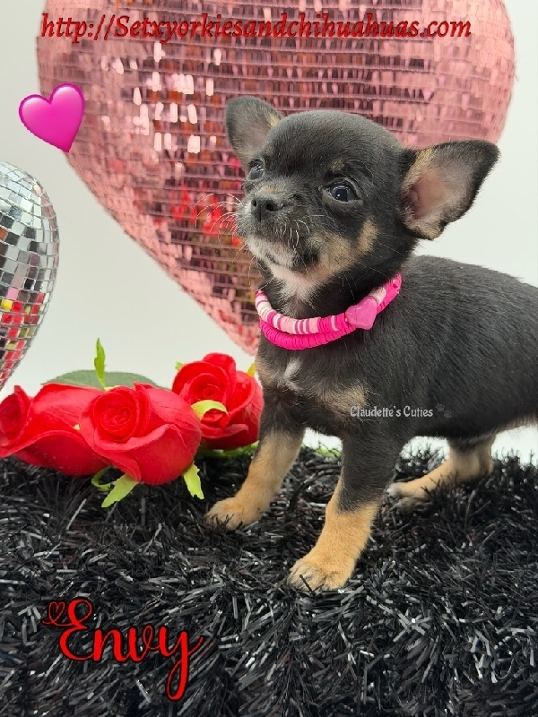 Stunning Micro AKC Female Applehead Chihuahua Sweet Miss Envy is a dream baby, perfect in every way. Charting 4 to 4 1/2 pounds, AKC Registered, perfect Gorgeous Black Tri color, the best temperament, an absolute sweetheart. Her DOB is 12/13, she has had her first round of vaccines, deworming and is already Microchipped. Envy comes with a 3 Generation Pedigree, 30 days is insurance a very nice puppy pack with carrier, blanket, toy, food, collar, bowls etc. This little girl is raised in my home, very well socialized and ready to make your dreams come true. 2800