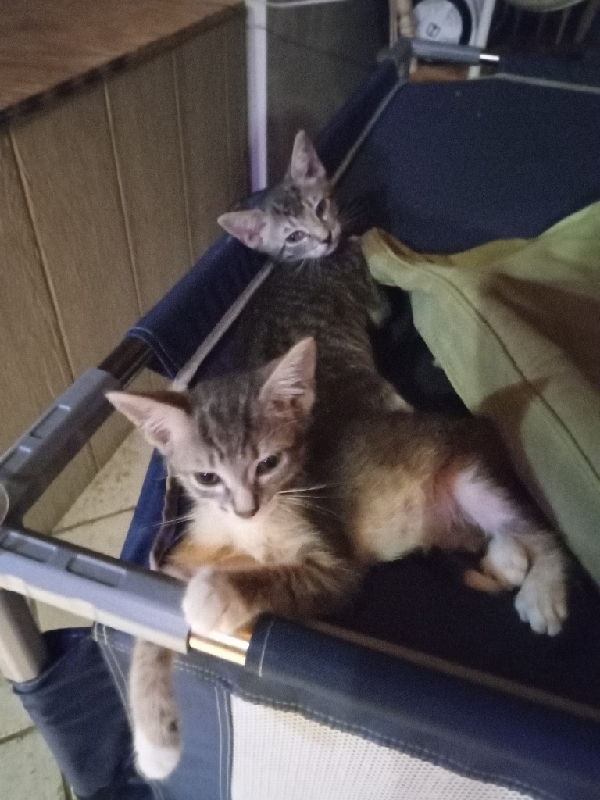 Sweet Kittens We have two litters of kittens that were born close together. One litter is about 2 1/2 months and the other litter is about 4 months old. They are all grey and white tabbys. Very sweet and playful. They need new homes, as we do not have enough room for them. All are litterbox trained. $5