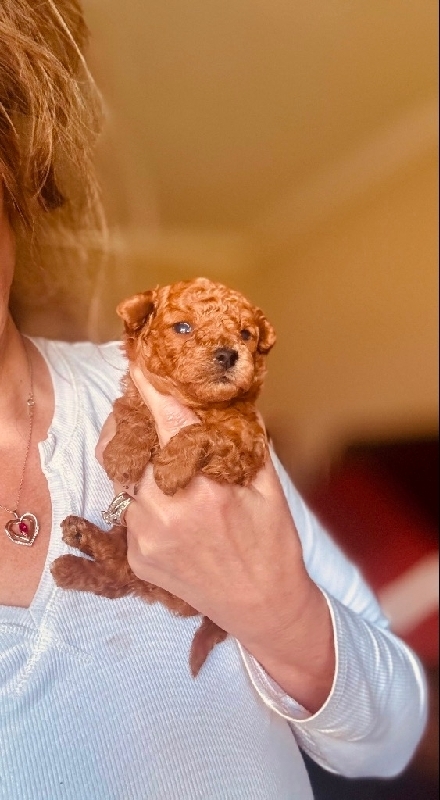 Teacup Poodles & Toy Poodle puppies- Shots & Registered. I have 5 tiny toy teacup poodles, available two females and three males. Males are 750$ and females are 850$. I also have one blue merle on white male toy poodle available for $1500. (First picture). Pet prices posted. Breeding? Please call 281-898-5845. We have one tiny teacup toy male red poodle left in the nursery, he is posted in the last three pictures- he is available for deposit and will be more expensive. FaceTime available. Pick up in Clear Lake, Houston Tx. We meet at the Clear Lake police station on Bay Area Blvd for safety. 750
