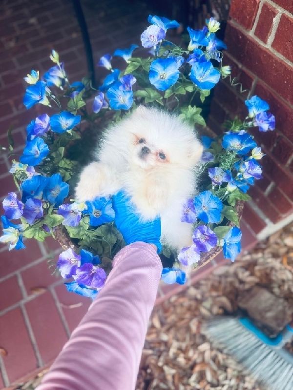 Teddy Bear faced Pomeranians We currently have five little Pomeranian puppies available for new homes. Four from one litter and one tiny little white girl from another mom she's very very small only someone with tiny pup experience need reach out. Call 832-892-2366 or Text for faster service. Clear Lake 2 white/merle males 850. Pet. 1 Female white/merle 1500. Pet. Xtra Small white female and red sable and white female 3500$. We meet at the police station for safety. 850