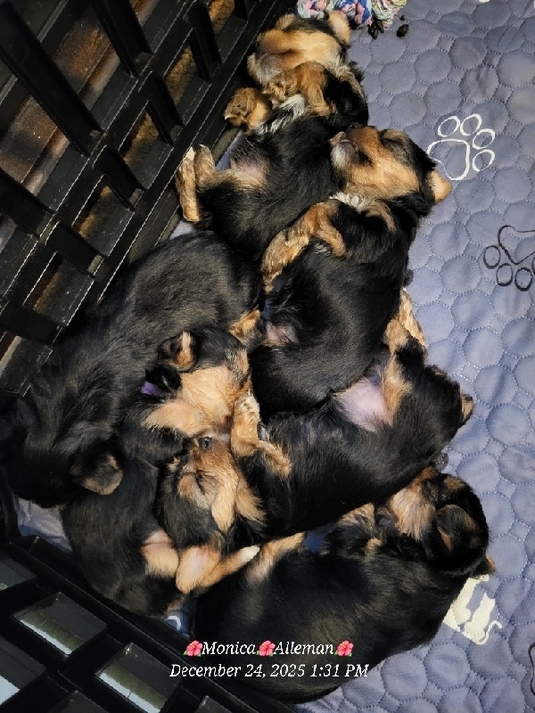 Yorkie puppies Yorkie puppies 6 weeks as of 1/3/26. DOB 11/22/25. Beautiful, healthy, playful, and loveable. 1 girl available. 4 boys available. 1st shots, all deworming, tails and dew claws removed. Complete vet care and healthy record. CKC registration on hand. More info-call 337-384-0462. Female 1600. Males 1500. Firm
