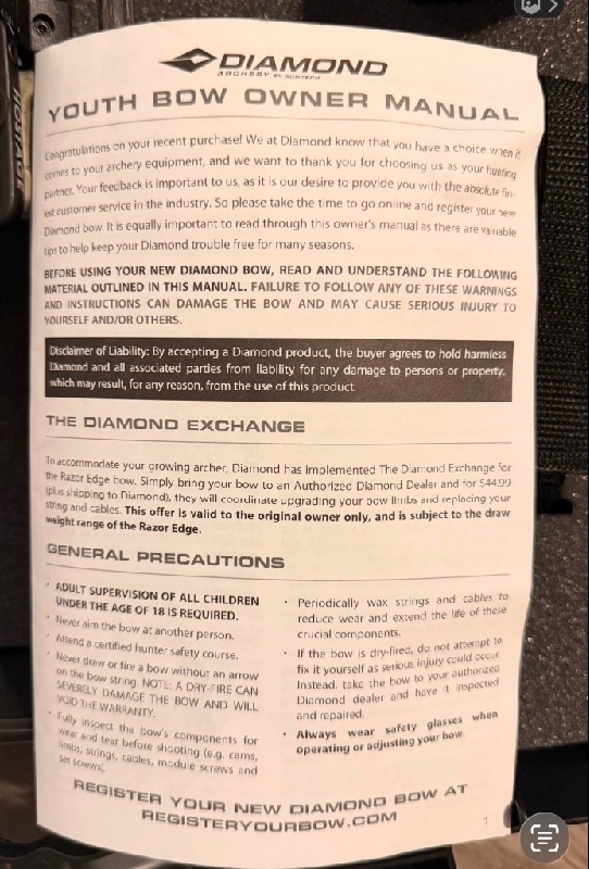 Youth Diamond Bow and case Youth Diamond bow by BowTech with hard case, arm guard, and wrist release. Comes with manual and never used. Was gifted it but it's for right handed and I am left. Selling everything together. Located in Dayton 300